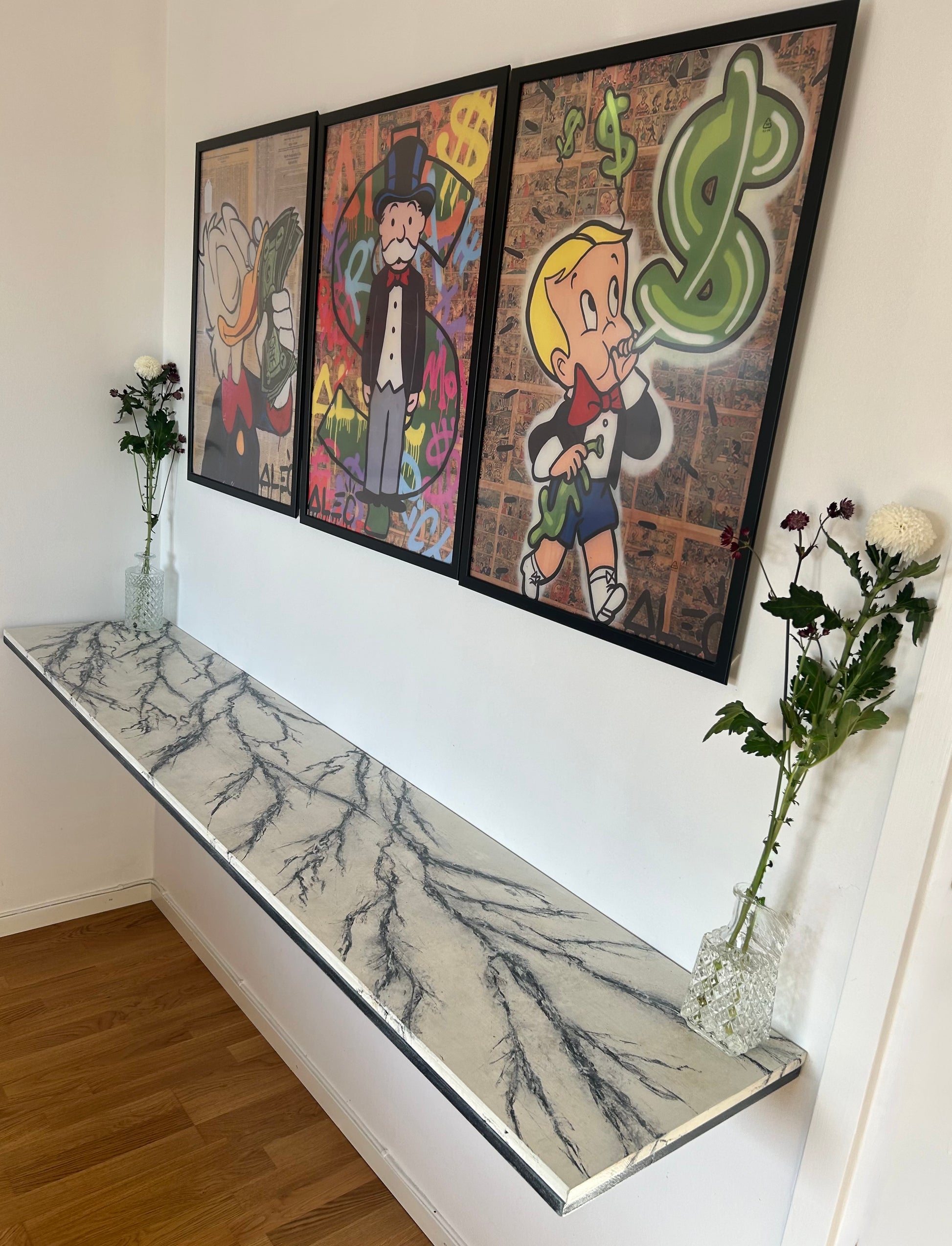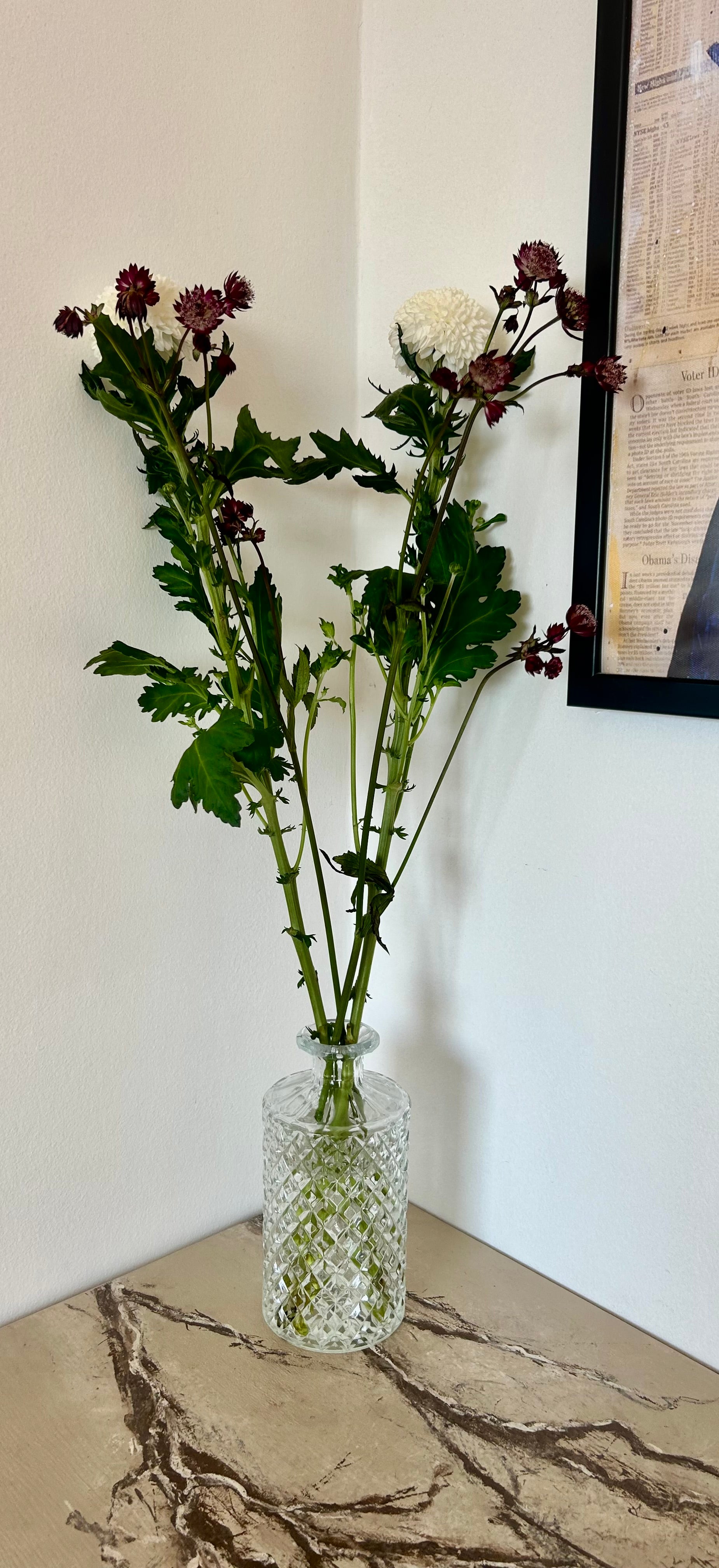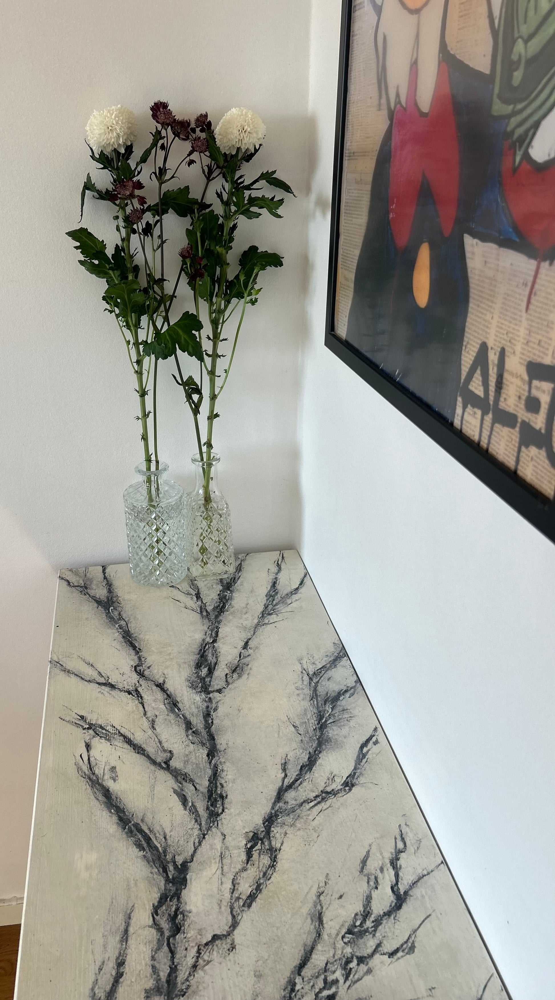 Det gick inte att ladda hämtningstillgänglighet Dessa eleganta glaskaraffer är inte bara perfekta för att servera drycker, utan fungerar också utmärkt som stilfulla vaser för små blombuketter. Deras smala hals och breda botten ger ett stabilt stöd som framhäver varje blomma, från en enkel kvist till en liten, frodig bukett. Den klassiska designen gör att de passar in i alla hemmiljöer, och de är lika vackra på ett dukat middagsbord som på en fönsterbräda eller ett sidobord. Ett perfekt sätt att addera en touch av grönska och färg i ditt hem.Två karaffer